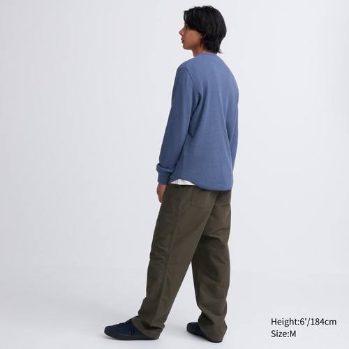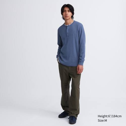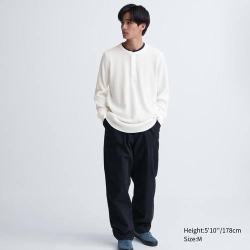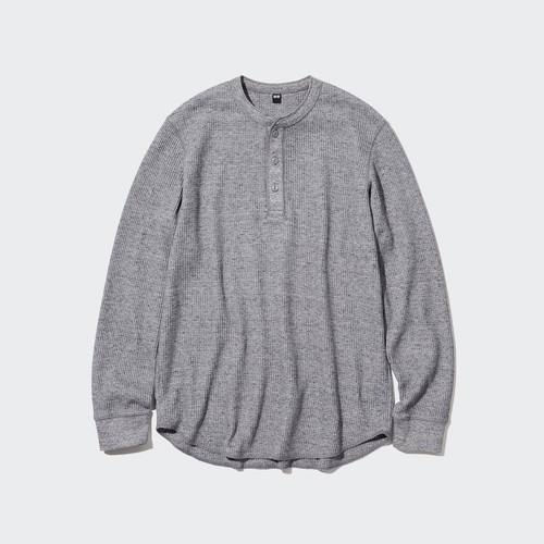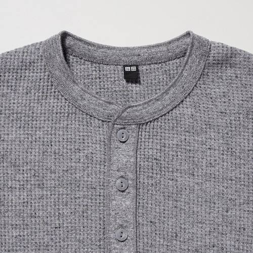 Футболка с длинными Рукавами и вафельным воротником Хенли Черный
