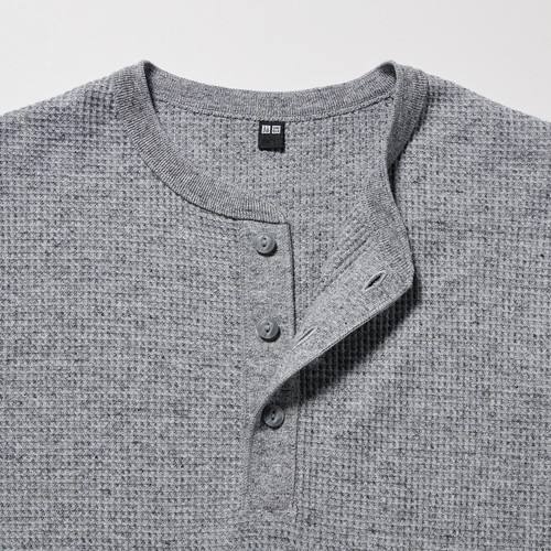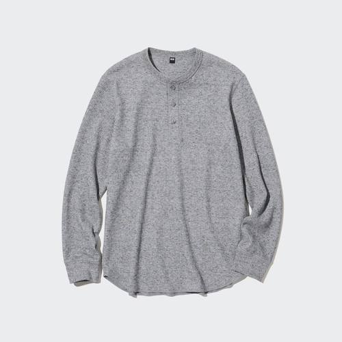 Футболка с длинными Рукавами и вафельным воротником Хенли Черный