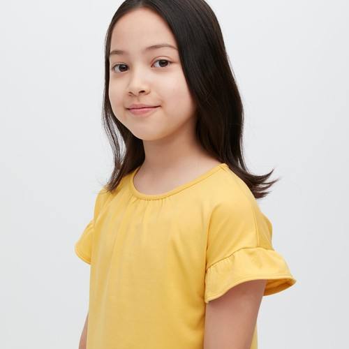 Хлопчатобумажная футболка с оборками для девочек AIRism Желтая