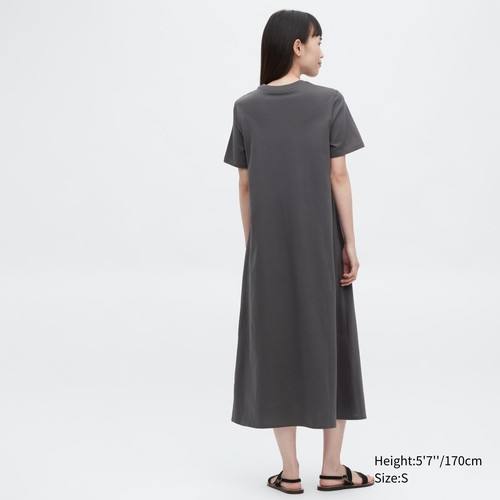 Платье А-силуэта из мерсеризованного хлопка с короткими рукавами Черный