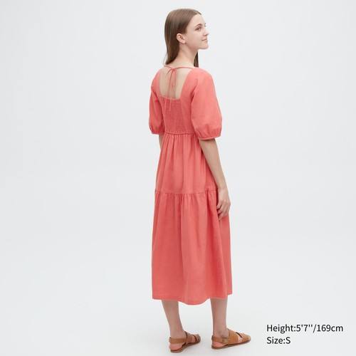 Воздушное платье из льняной смеси объемного расклешенного кроя.