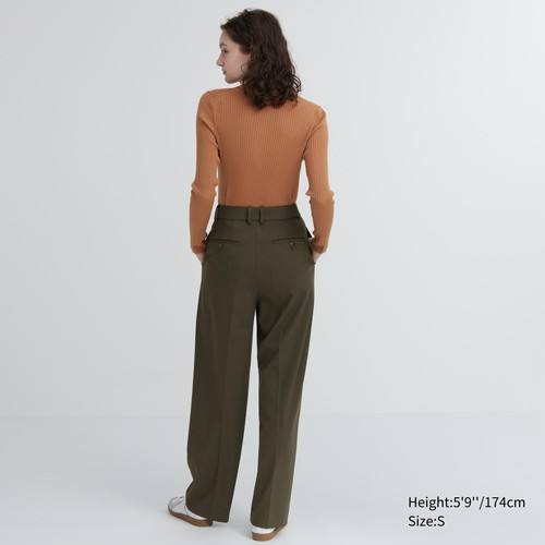 Плиссированные Широкие Брюки (Длинные) Оливковая