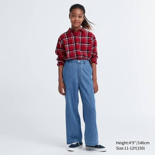 Широкие джинсы с прямыми штанинами для девочек Синяя