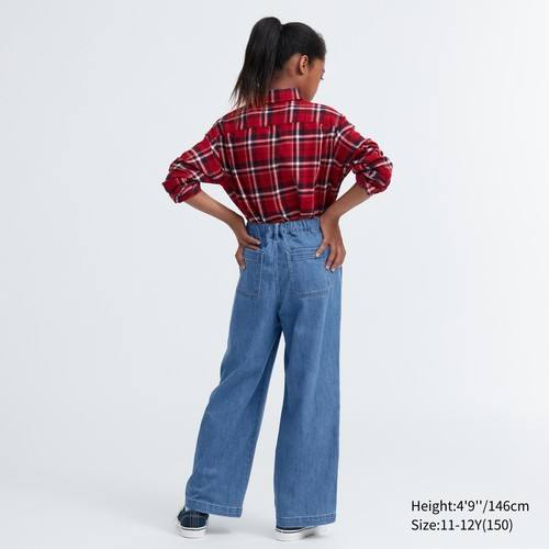 Широкие джинсы с прямыми штанинами для девочек Синяя